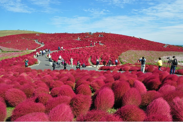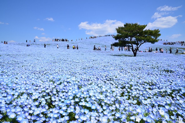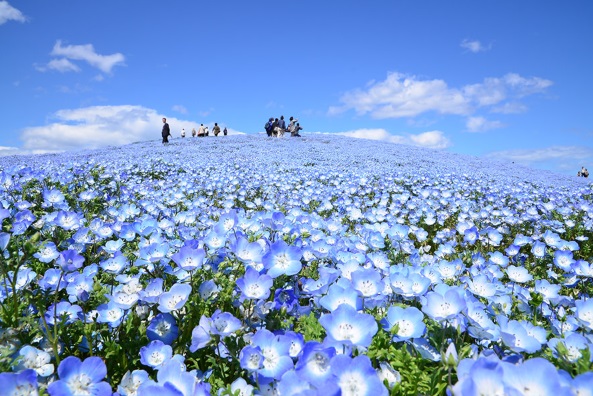 毎年4月から5月にかけては、450万本以上のネモフィラによる、壮大な空色のじゅうたんが広がります。