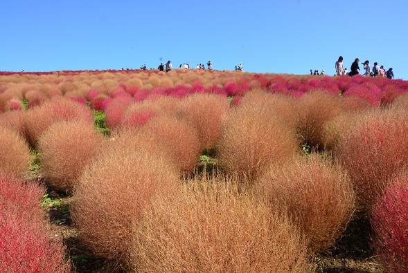 春のチューリップや秋のコキアなど、季節ごとにさまざまな花が見られる。