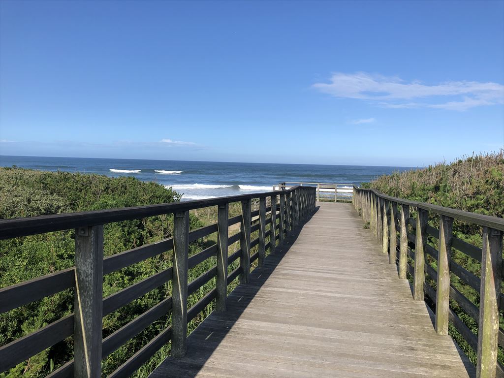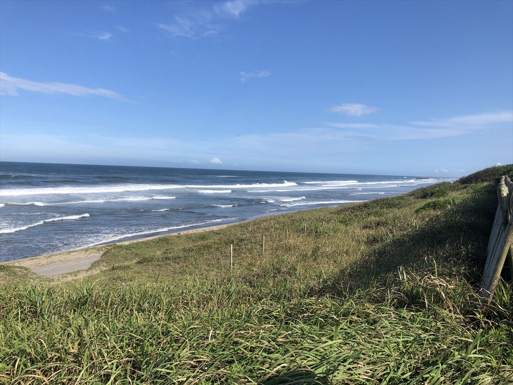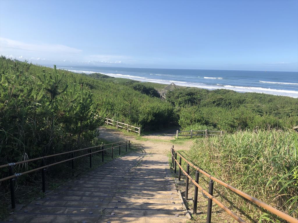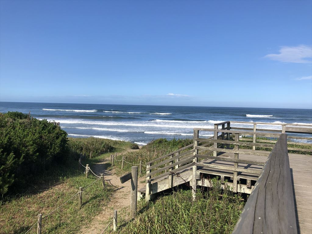 鹿島灘海浜公園と大竹海岸が繋がっているので、駐車場から歩いて大竹海岸まで、海を見下ろしながら散歩ができます。