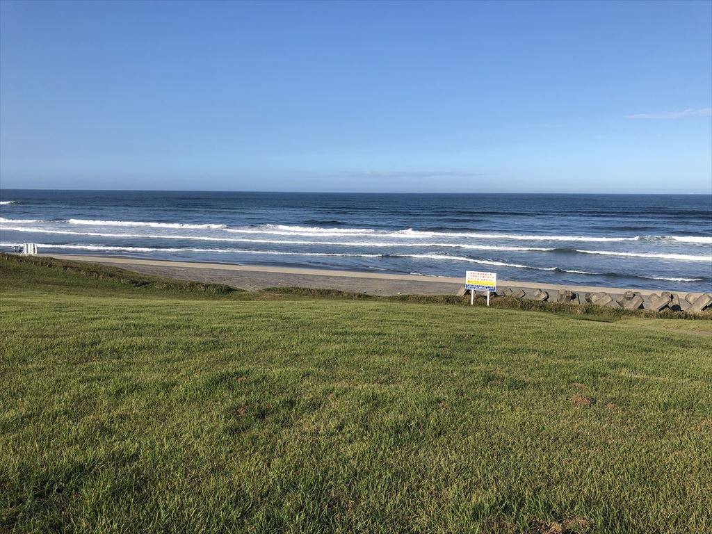 公園は整備されており、芝生と海のコントラストが綺麗です。
