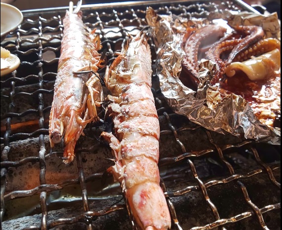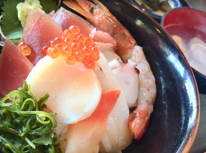 鹿島灘の焼きハマグリが名物。1500円で8個。マグロ丼、しらす丼、イカ、エビなど